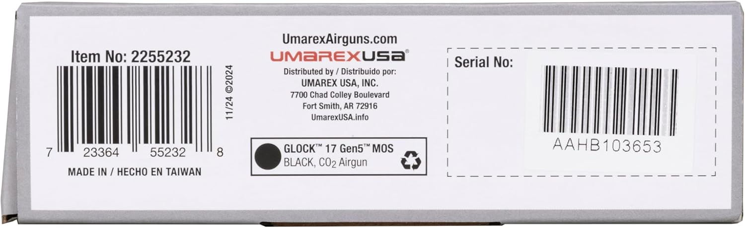 In The Box Umarex Glock 17 Gen 5 .177 Cal MOS C02 Blowback Air Pistol (2255232) (Bundle Options Available. Choose Your Bundle Option):