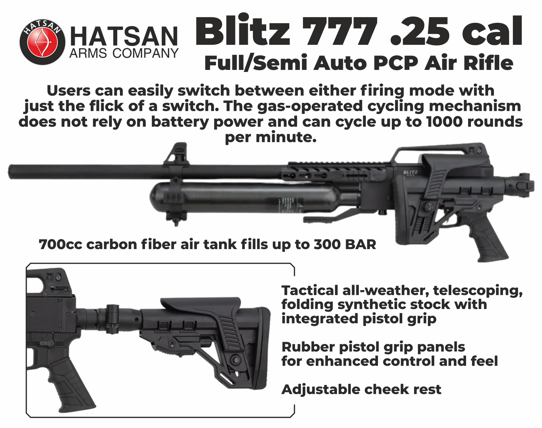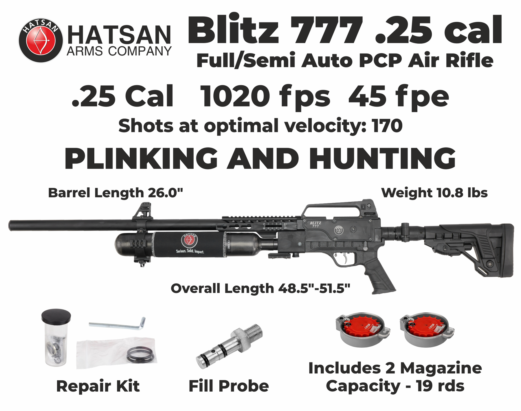 In The Box Hatsan Blitz 777 .25 Cal 1020 FPS 45 FPE PCP Air Rifle (HGBlitz725) (Bundle Options Available. Choose Your Bundle Option):