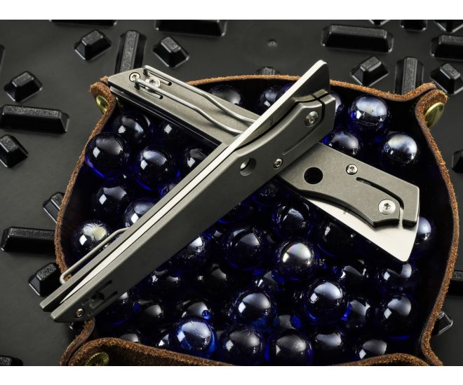 Paul Alexander has become one of Spyderco’s most popular and prolific designers. His first non-locking folder, the NAND introduced us to his “techno-primitive” design style, which combines sleek, futuristic lines with classic simplicity. Springboarding off that pattern is his COBOL, which expresses his unique variation of the Ball Joint Non-Locking Mechanism with a more dramatic, Asian-inspired aesthetic. Precision machined from M390 particle metallurgy stainless steel, its saber ground primary bevel flows seamlessly into a flat grind at the faceted tip. On the opposite end of the blade is an extended “tail” that allows the knife to be opened one handed. The handle of the COBOL features solid titanium scales. Hand pressure on the blade’s tail and a generous choil at the base of the edge further guarantee a safe, secure grip. To round out the completely ambidextrous design, the COBOL includes a reversible deep-pocket wire clip that offers a choice of left or right-side, tip-up carry.
