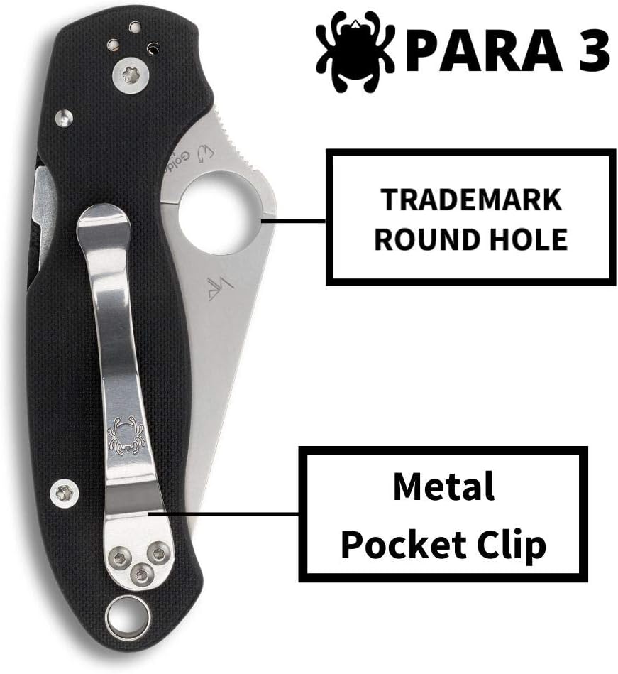 Spyderco PSpyderco Para 3 G-10 Black CPM S45VN 2.93" Serrated Edge Folding Pocket Knife (C223GS) Specifications:
