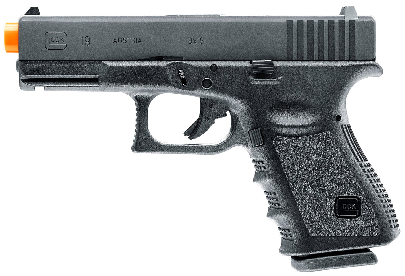 The GLOCK 19 Airsoft Blowback Pistol is a compact version of the GLOCK 17. Both the grip and slide of the G19 are shorter, making for a quick handling, easy carrying sidearm that is a hit with handgun shooters everywhere in the US. The G19 gas blowback action Airsoft pistol likes to show what it is made of. Take it apart, clean, reassemble, and holster with the ease. Airsoft enthusiasts can expect to launch from the drop free magazine 19 rounds .20 gram BBs at 290 FPS.