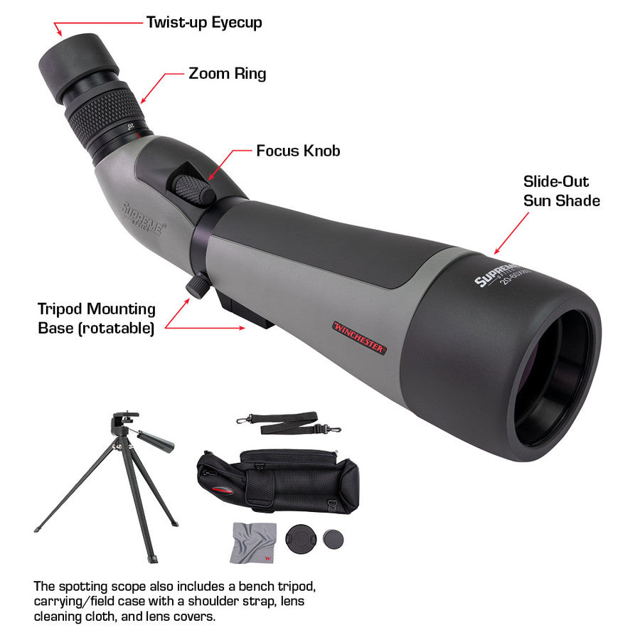 Winchester Supreme W20-60x65mm Angled Spotting Scope (SPRM12-20-60x65) Specifications: