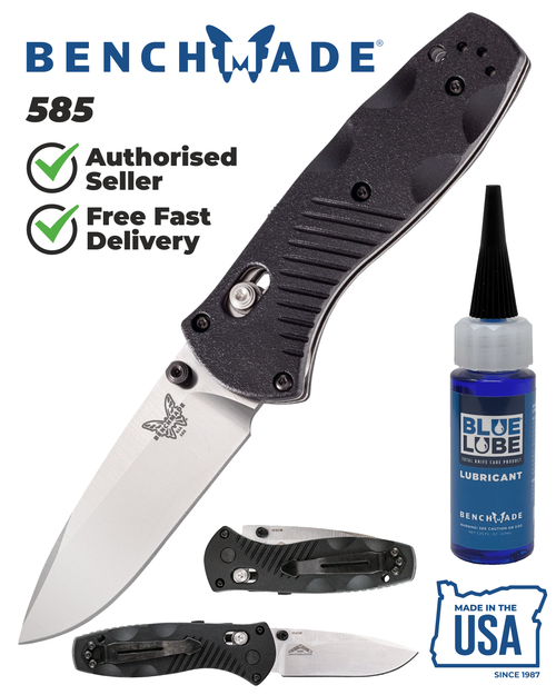 Benchmade Mini Barrage 585 Plain Edge Drop-Point 2.91" Black Handle Pocket Knife with Benchmade Blue Lube Lubricant for knives 37ml 1.25fl oz (Made in USA)