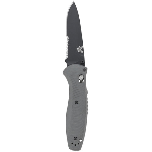 Benchmade Barrage 580SBK-2 Knife, Serrated Drop-Point, Coated Finish, Gray Handle
