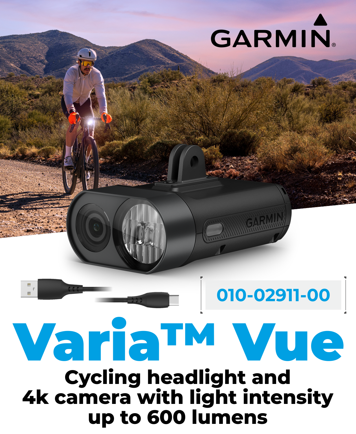 See it and save it with the Varia Vue headlight camera. This advanced device records crisp, clear 4K video and automatically saves footage if it detects an incident (jurisdiction restrictions may apply). A 32GB memory card is included in bundle versions, so you’re ready to start recording right out of the box. The headlight delivers up to 600 lumens of brightness with side illumination for increased visibility. Smart lighting features include a cutoff beam to prevent blinding others and auto brightness control that adjusts based on your speed and ambient lighting when paired with a compatible Edge cycling computer. Varia Vue offers up to 7 hours of battery life in day flash mode with recording enabled. When paired with the Varia RCT715 rearview radar camera tail light, you can simultaneously capture rear-facing footage for complete ride coverage. Use the Varia app to control camera and light settings, edit footage, and add data overlays such as speed or route information. For secure video storage and automatic uploads of incident footage via Wi-Fi, subscribe to Garmin Vault (a free trial is available for new users).