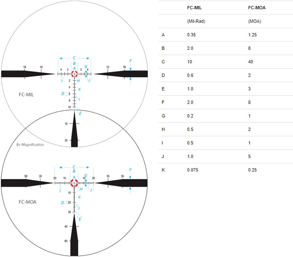 Nightforce NX8 1-8x24 F1 FC-MIL 30mm Tube FFP Riflescope (C598) Specifications: