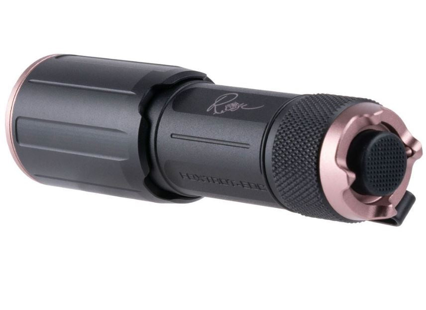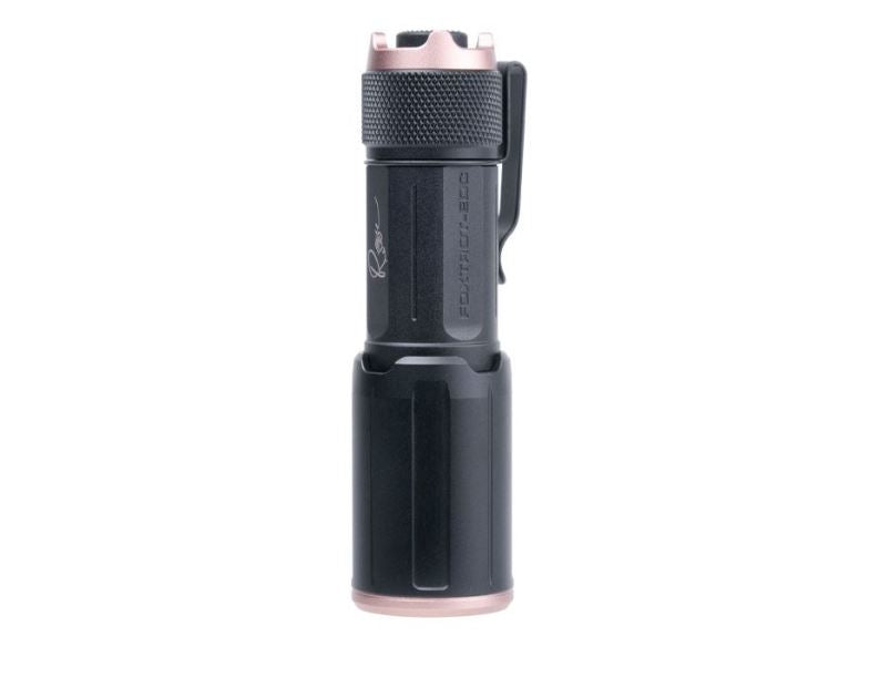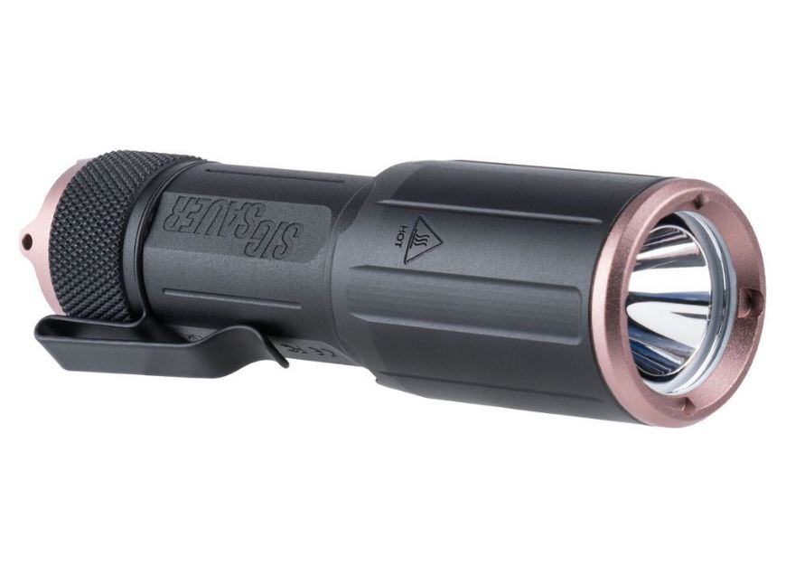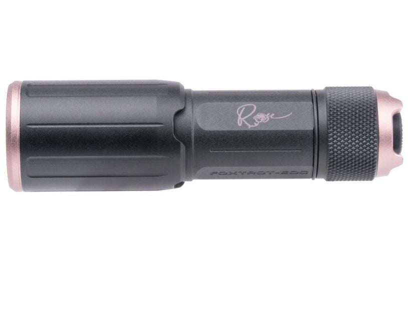 Inspired by the streamlined versatility of the FOXTROT illumination series, the SIG SAUER FOXTROT-EDC ROSE delivers high-output performance in a compact handheld design suitable for a wide range of uses. Producing up to 1,350 lumens and 33,000 candela, this flashlight offers a focused, powerful beam with up to one hour of runtime using the included rechargeable lithium-ion battery. Designed for portability and convenience, it fits comfortably in a pocket or can be securely attached to a vest using the included clip.