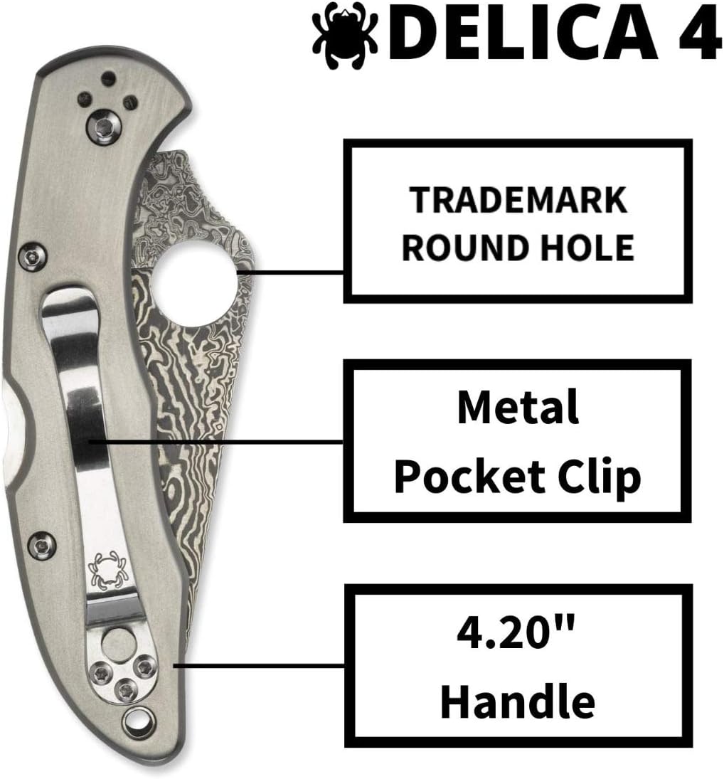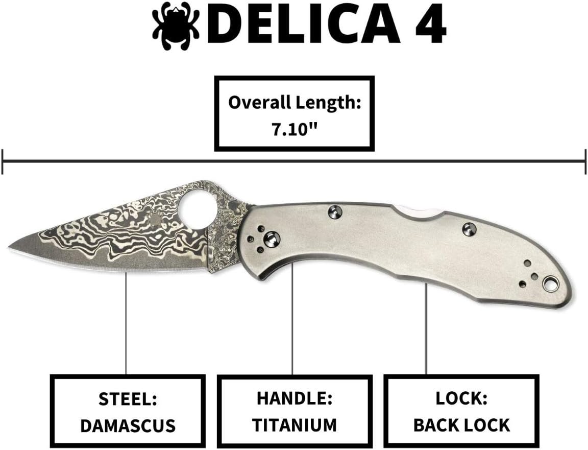 Spyderco Delica 4 Titanium / Damascau VG-10 2.9" Plain Edge Folding Pocket Knife (C11TIPD) Specifications: