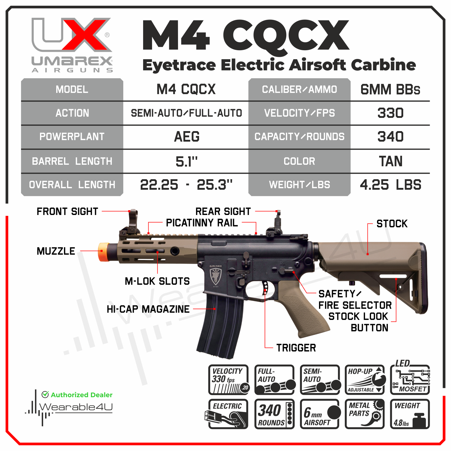 Umarex Elite Force M4 CQCX 6 mm BLACK/TAN Eyetrace Electric AEG Airsoft Rifle Specifications: