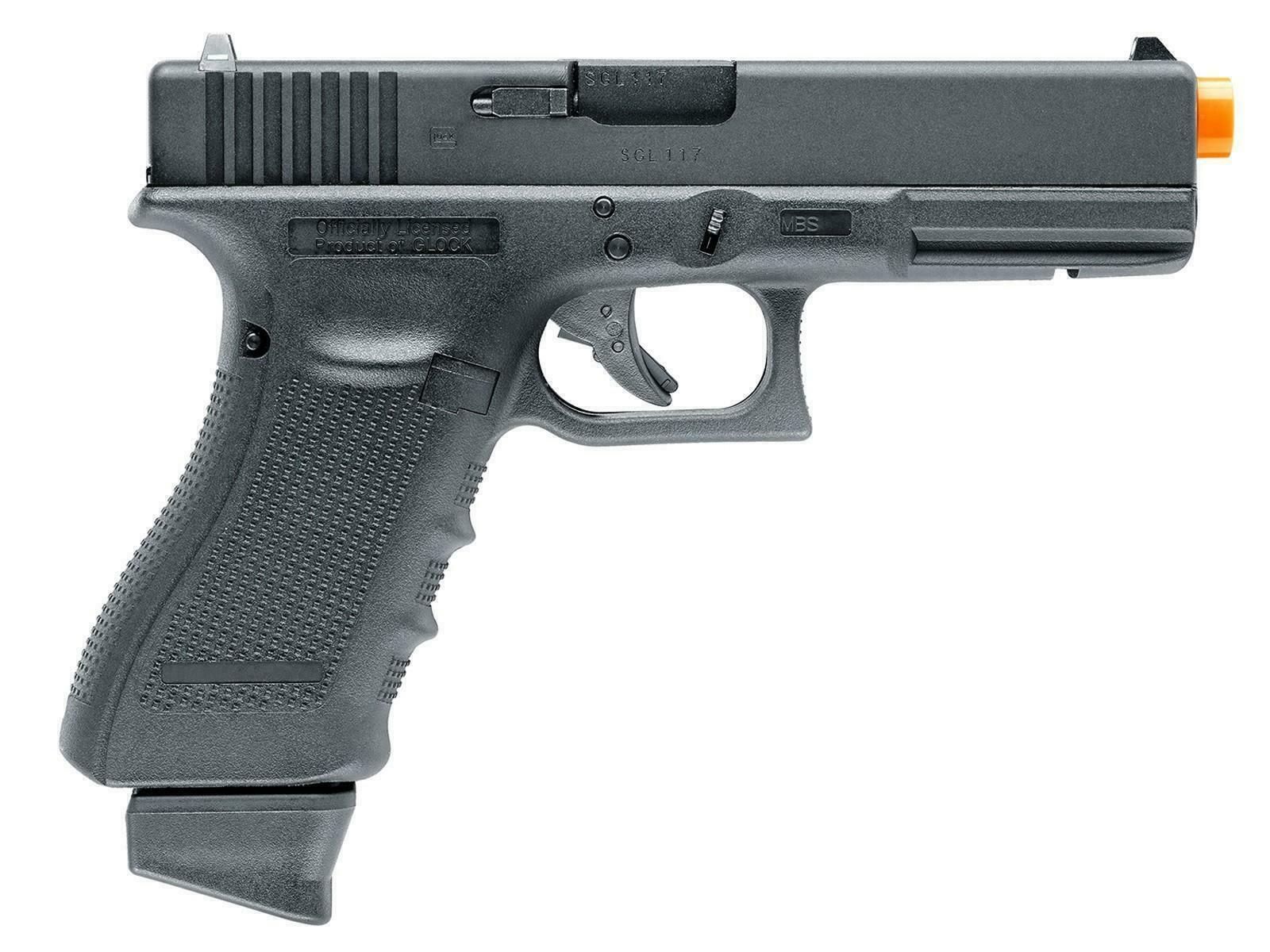 The GLOCK 17 Airsoft Pistol CO2 powered Airsoft Pistol is a full blowback 6mm Airsoft pistol! It uses standard 12-gram CO2 cartridges that insert into the magazine that holds 23 rounds. Whether you are looking to dominate on the airsoft field, or keep your skills sharp in the backyard, the Glock 17 Gen4 CO2 Airsoft Pistol from Umarex can help take your shooting to the next level! This is the perfect Airsoft Pistol for you. Great for a present! No hustle searching for compatible accessories! Buy the bundle and enjoy!