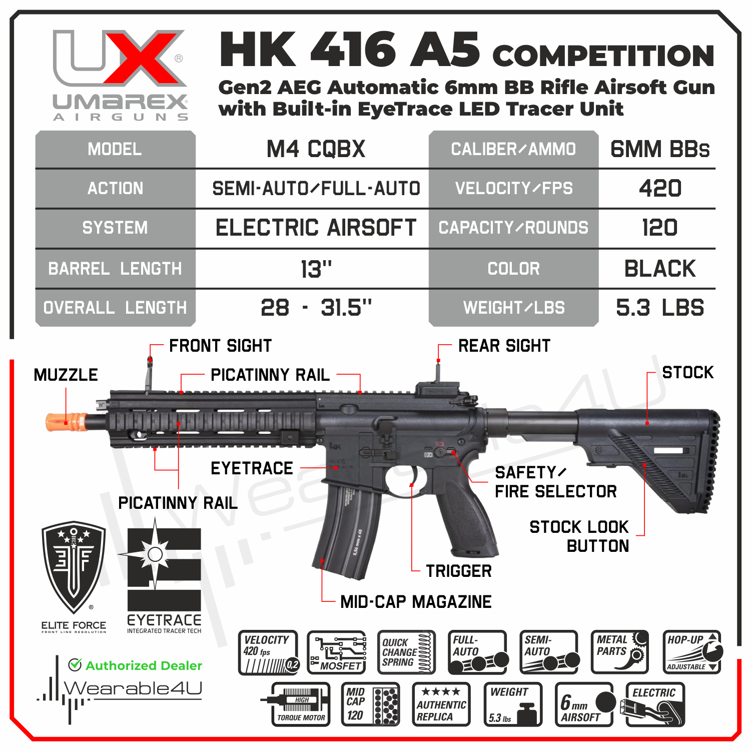 Umarex HK Heckler & Koch HK416 A5 Competition Gen 2 EyeTrace 6mm AEG Airsoft Rifle (2275062) Specifications: