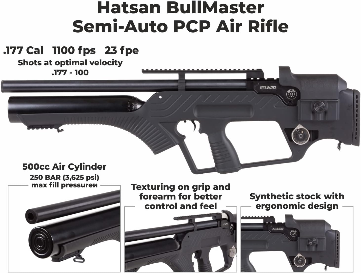 Hatsan BullMaster Side Bolt Semi-Auto .177 Cal PCP Air Rifle Specifications: