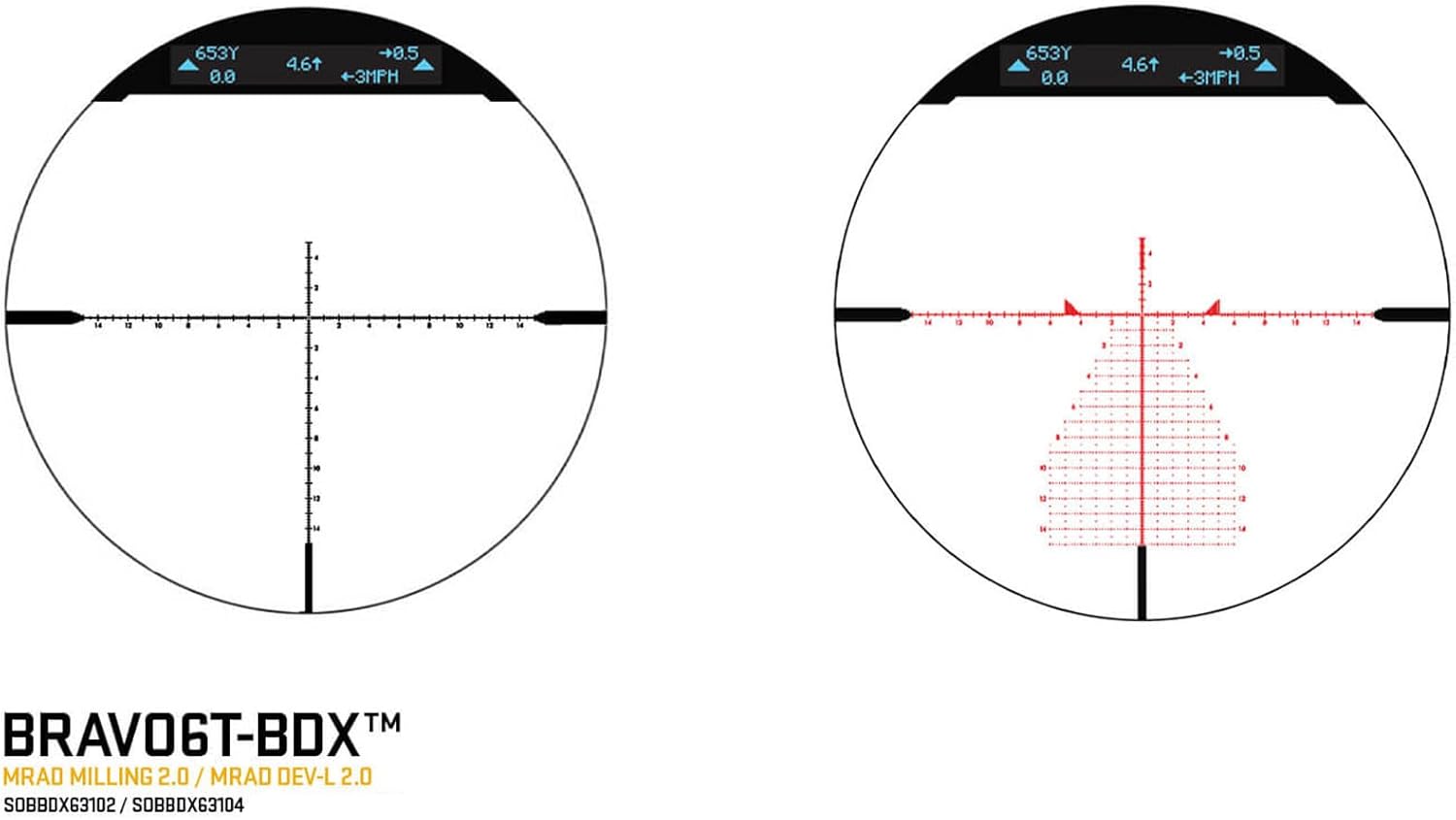 Sig Sauer BRAVO6T-BDX 3-18X44mm FFP MRAD DEV-L 2.0 Riflescope (SOBBDX63104) Specifications: