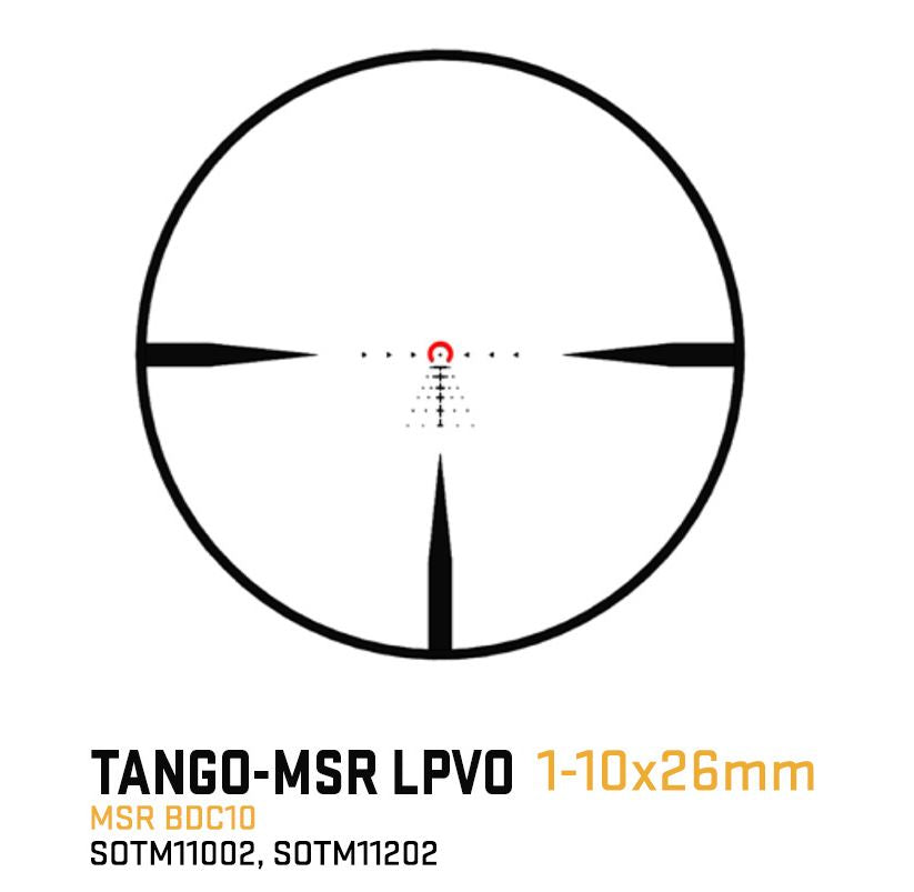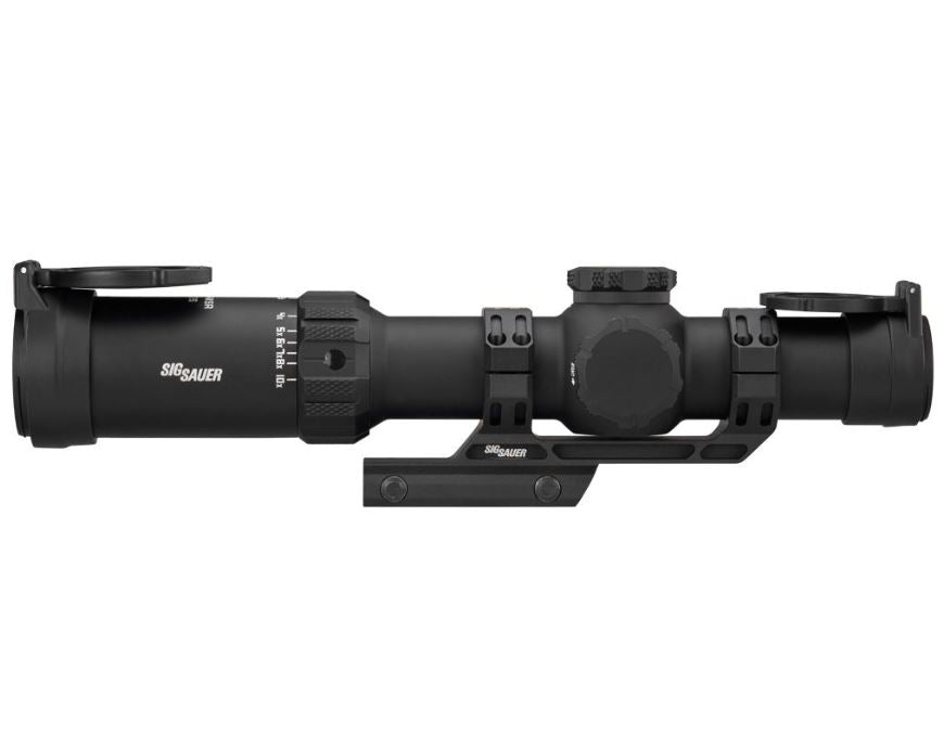 Experience outstanding optical clarity and excellent light transmission with the SIG SAUER TANGO-MSR LPVO, designed for versatile use across a wide range of environments. The high-performance optical system features low-dispersion glass for sharp, clear image quality. An integrated thread-in throw lever allows quick and smooth magnification adjustments. The illuminated MSR BDC reticle with 11 brightness settings provides clear reticle visibility in varying lighting conditions. For added convenience, lay-flat flip-back lens covers are included to help protect the optics when not in use. The scope is built to be waterproof, impact-resistant, and fog-resistant, ensuring dependable performance in challenging environments. It also includes an ALPHA-MSR one-piece aluminum cantilever mount for easy and secure installation.