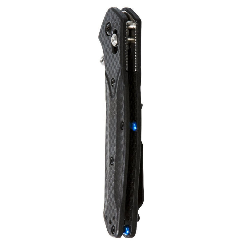 The CPM-S90V stainless steel blade has exceptional edge retention while still maintaining great strength and toughness. The carbon fiber handle is strong and lightweight, making it easy to take anywhere.