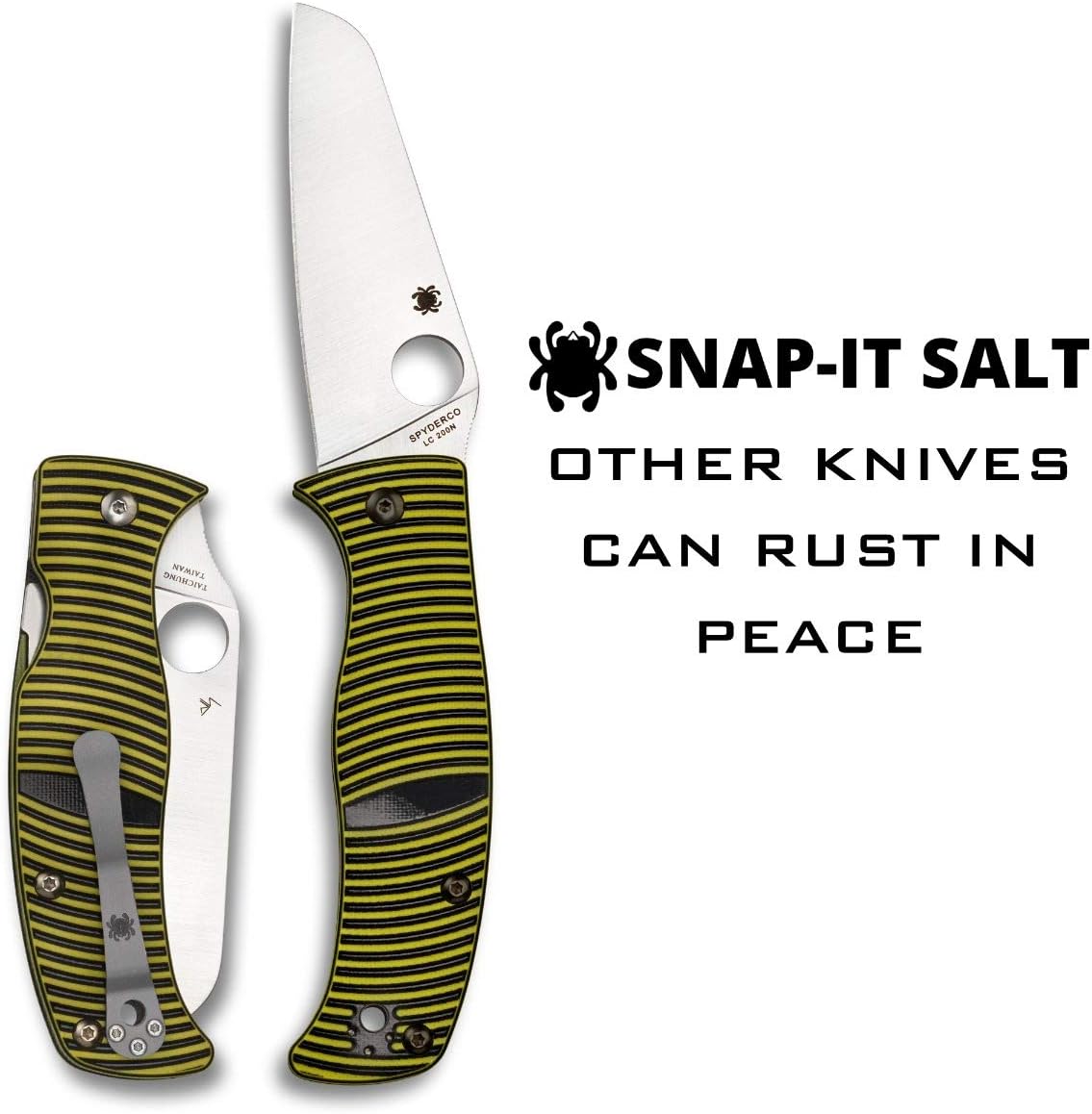 The Caribbean Salt family of knives have a number of distinguishing characteristics that separate them from Spyderco’s other Salt Series folders, yet still make them ideal cutting tools for use in and around the water. The blades of these knives are crafted from LC200N - a nitrogen and chromium-rich alloy that achieves its hardness through a conventional heat-treatment process, yet offers incredible corrosion resistance and toughness. Their lightweight, open-backed handles feature special G-10 scales with alternating colored layers. The outside surfaces are painstakingly machined to create a ribbed pattern that offers a non-slip texture and reveals the contrasting color of the underlying layer. The inner side of the scales is also machined to accept the nested, corrosion-resistant LC200N liners that provide impressive structural strength and form the foundation of the knife's Compression Lock mechanism. To ensure convenient carry and instant access, all Caribbean Salts feature a reversible titanium hourglass pocket clip that supports left or right-side tip-up carry and a lined lanyard hole for the easy attachment of safety lines, lanyards, or fobs. This version of the Caribbean features the traditional sheepfoot blade profile often favored by mariners. Full-flat ground for exceptional edge geometry and low-friction cutting performance, and has a fully accessible Trademark Round Hole for deft, ambidextrous, one-handed opening.