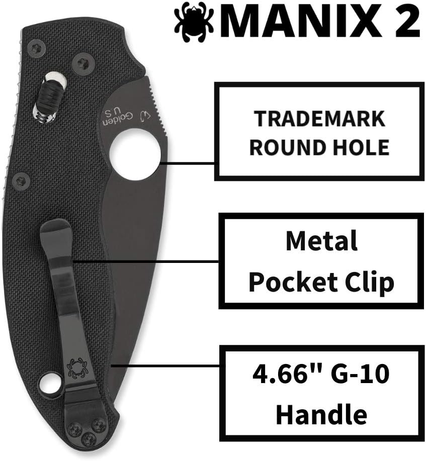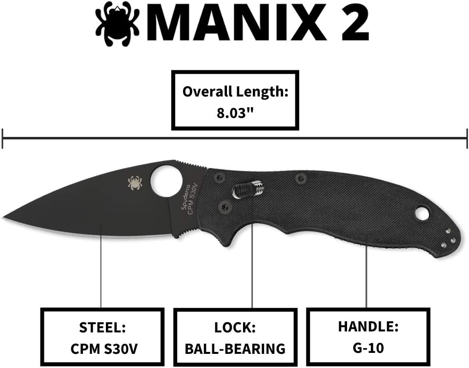 Spyderco Manix 2 Black G-10 Plain Edge 3.37" Folding Pocket Knife (C101GPBBK2) Specifications: