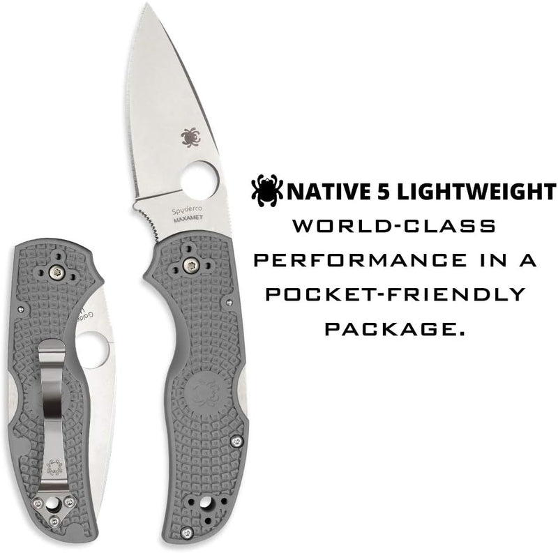 Spyderco Native 5 FRN Grey Maxamet Lightweight 2.95" Plain Edge Folding Pocket Knife (C41PGY5) Specifications: