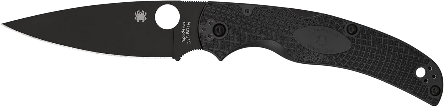 Spyderco Native Chief Black Blade Lightweight Plain Edge Folding 4.02" Pocket Knife (C244PBBK) Specifications: