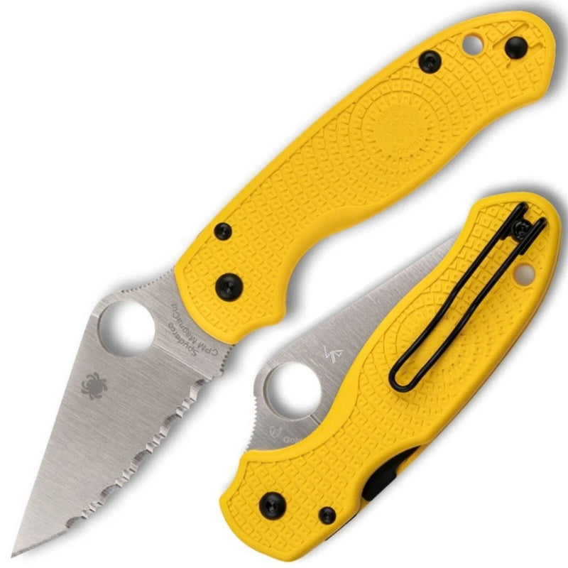 Sleek, simple, and fearlessly corrosion resistant, the long-awaited Para 3 Lightweight Salt may be the ultimate everyday carry knife for those who work in and around the water. This knife takes the innovative Para 3 Lightweight platform and supercharges it with a SpyderEdge blade crafted from CPM MagnaCut - a revolutionary powder metallurgy stainless steel that offers an incredible balance of edge retention, toughness, and corrosion resistance. Its open-backed fiberglass-reinforced-nylon (FRN) handle is injection molded in bright yellow to ensure high visibility and features Spyderco’s Bi-Directional Texturing for a secure grip, even with wet hands. To complete the package, the knife’s streamlined Compression Lock, reversible deep-pocket carry clip, and all other hardware are all precision machined from ultra-corrosion-resistant materials.