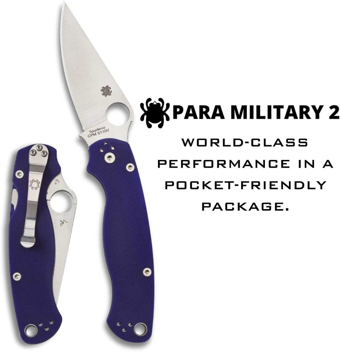 Spyderco ParaMilitary 2 G-10 Dark Blue CPM S110V 3.45" Plain Edge Folding Pocket Knife (C81GPDBL2) Specifications: