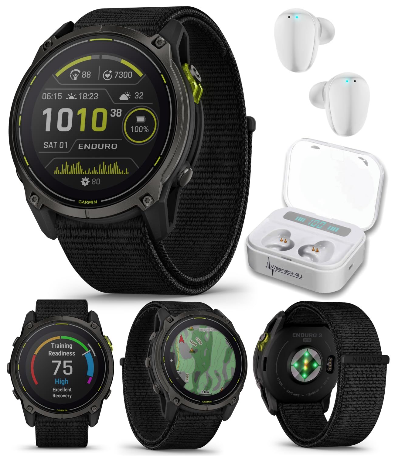 Wearable4U Ultimate Black EarBuds + Power Pack Bundle: