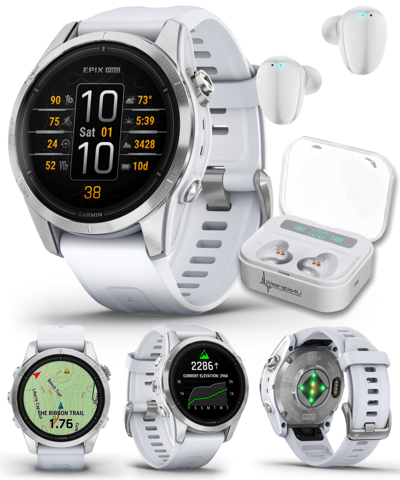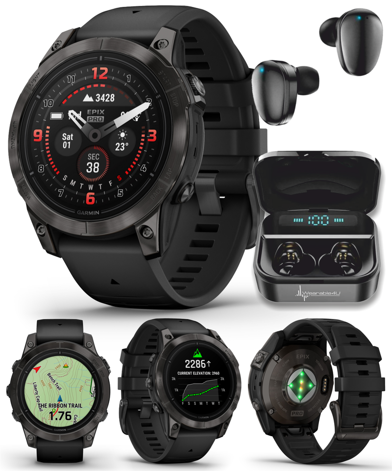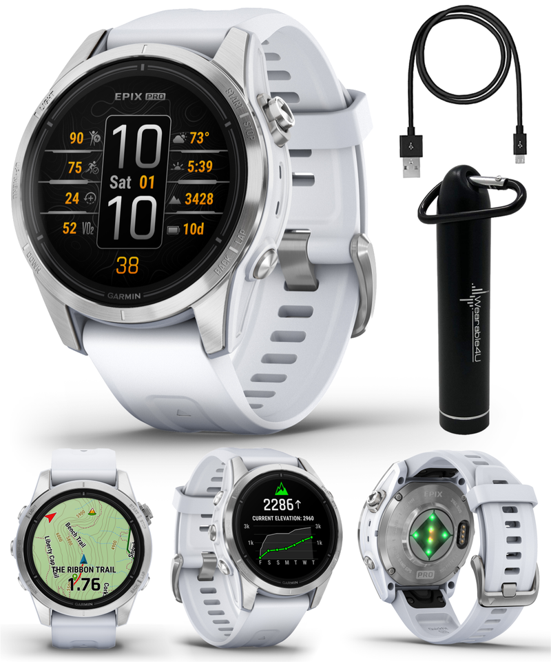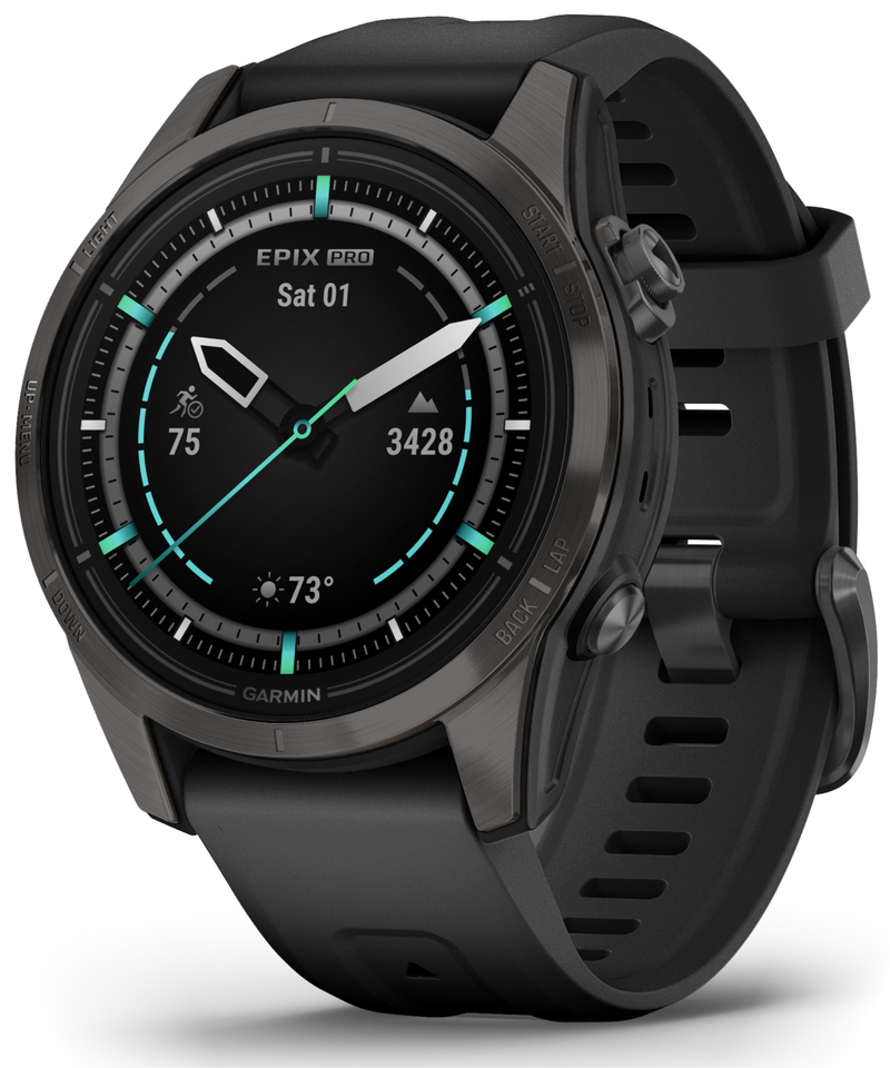 All day, every day — the epix Pro Gen 2 smartwatch helps you conquer every hour. This ultimate high-performance smartwatch features a stunning AMOLED display. Go longer between charges with up to weeks of battery life in smartwatch mode. Rise to any challenge with advanced training features; hill score measures your climbing performance over time, and real-time stamina updates gauge your stamina potential. The bright LED flashlight provides convenient illumination when you need it. Prioritize your mental and physical wellness with 24/7 health monitoring features such as advanced sleep tracking, HRV status and more (data presented is intended to be a close estimation of metrics tracked). Navigate with preloaded TopoActive maps and ski resort maps; download even more regions for global adventures. Gain superior positioning accuracy in any environment while optimizing battery life, thanks to multi-band and multi GNSS with SatIQ technology.