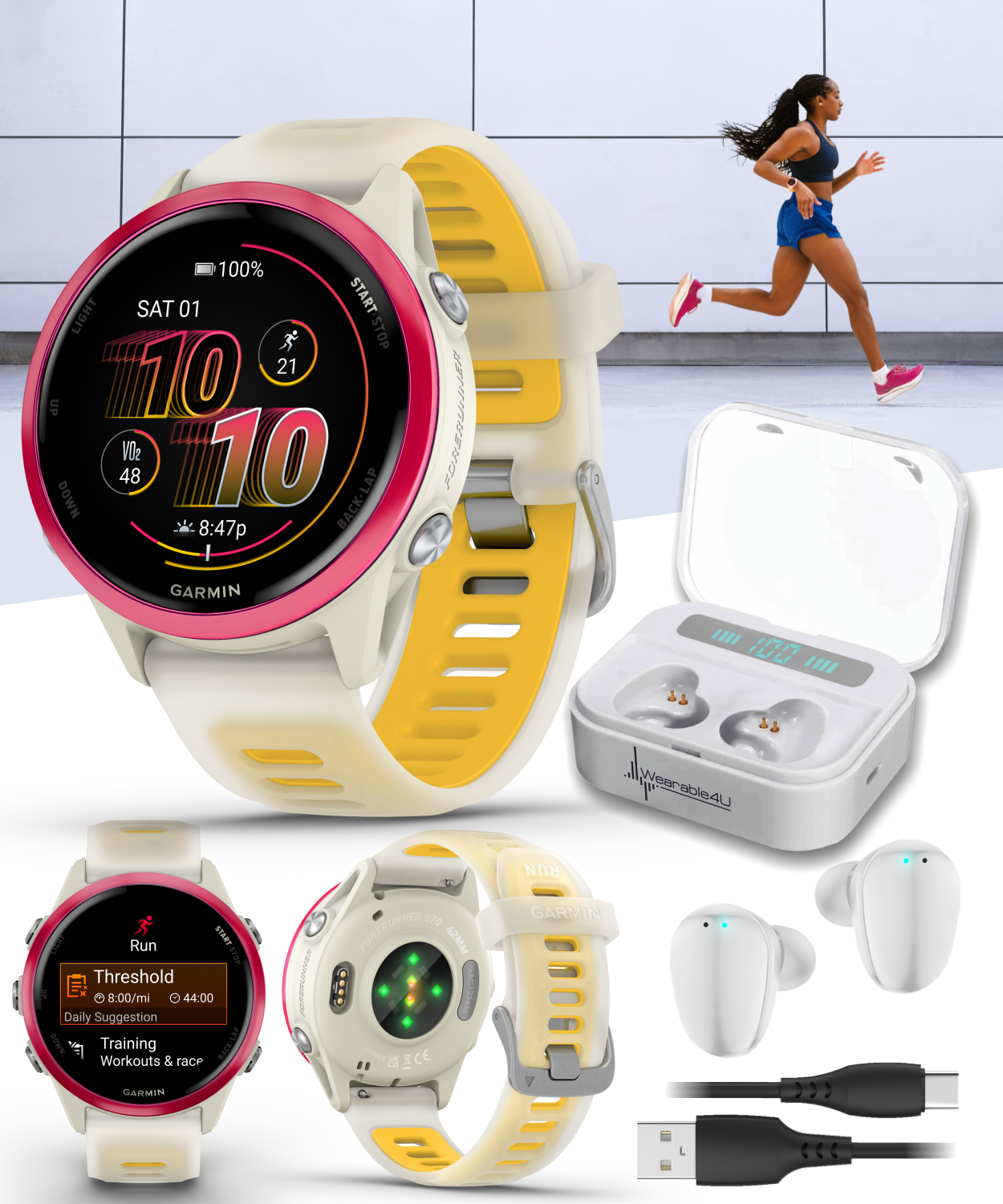 • IN THE BOX (+White EarBuds): 1x Forerunner 570 GPS running watch; charging cable; documentation; 1x Wearable4U White EarBuds