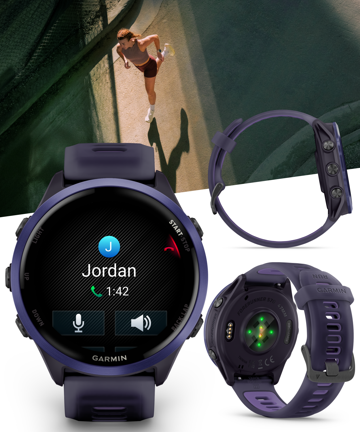 For dedicated runners chasing goals, there’s Forerunner  570 — the GPS running smartwatch with our brightest AMOLED display, aluminum bezel and smaller size to fit smaller wrists. Get ready for your race with personalized plans from Garmin Coach for running and triathlons — and select plans adapt based on your performance and recovery. Use the training readiness feature to know when you’re primed for a productive workout, and use training status to know if you’re training productively. With multi-band GPS, you’ll get superior positioning accuracy in challenging environments. Forerunner 570 has a built-in speaker and microphone so you can make or take calls from your wrist (when paired to your smartphone). Before heading to bed, check your evening report, which helps you prepare for the next day with reminders of sleep needs, tomorrow’s workout, weather and more. You’ll always be ready to hit the ground running with up to 10 / 11 days of battery life in smartwatch mode and up to 18 hours in GPS mode..
