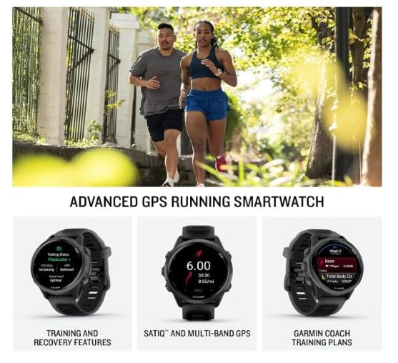 • Up to 10/11 days of battery life in smartwatch mode and up to 18 hours in GPS mode for a more complete picture of your training and recovery. Train for an event, achieve a milestone, or improve your fitness with Garmin Coach training plans; these running and triathlon plans are personalized to you and adapt based on your performance and recovery