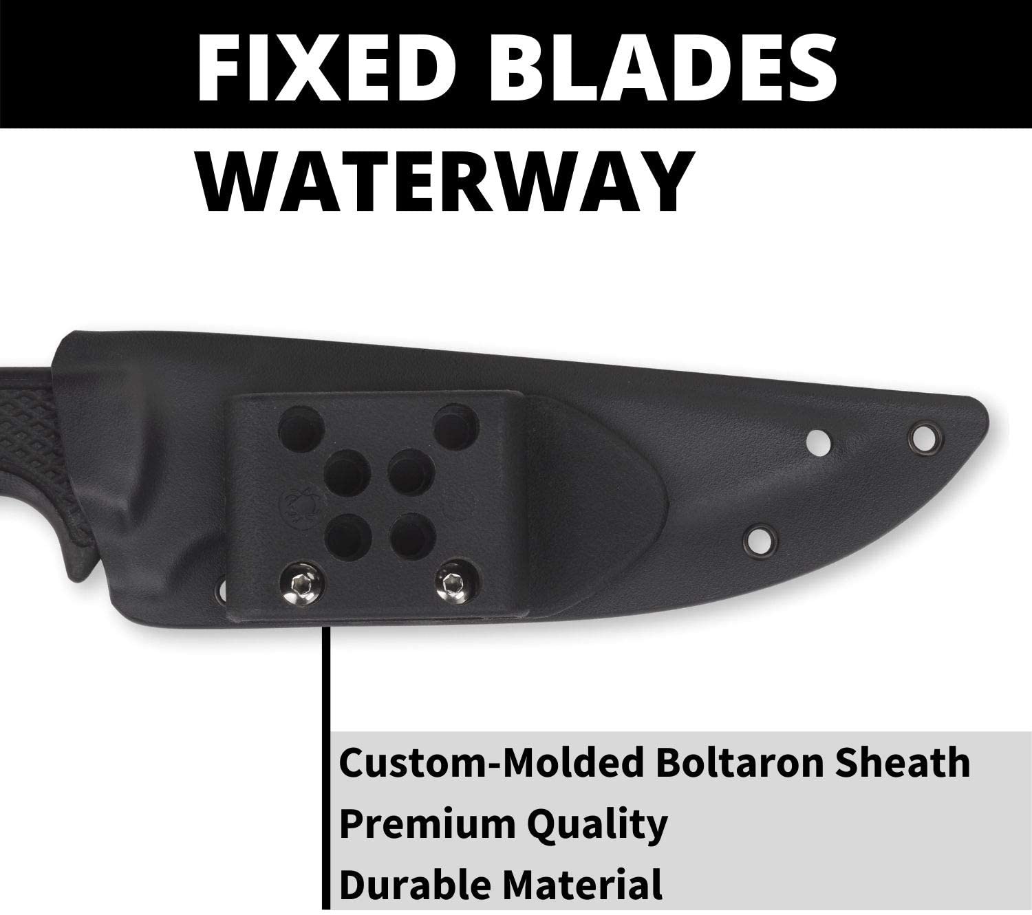 Waterway designer Lance Clinton is a lifelong knife enthusiast and professional kayak fisherman who has spent literally thousands of hours on the water, making his knowledge of hard-use marine knives unparalleled. Clinton’s vision for the Waterway was to create an ultra-corrosion-resistant knife that would excel at fishing tasks while remaining well suited to general utility and outdoor use. The Waterway’s blade is crafted from LC200N—a state-of-the-art high-nitrogen alloyed tool steel specifically formulated to offer superior corrosion resistance and extreme toughness, even at high levels of hardness. To maximize its strength and balance, the Waterway’s PlainEdge blade features a full tang. It is flanked on both sides by solid G-10 scales that are meticulously 3-D machined to create a non-slip diamond pattern. The scales are attached by a specialized process involving blind pins and a high-strength industrial adhesive, ensuring a permanent, water-tight bond. To allow convenient carry and keep the Waterway instantly accessible, it comes complete with a custom-molded Boltaron sheath with a versatile G-Clip attachment. The snap-fit sheath retains the knife securely, while allowing a smooth, easy draw, and the G-Clip can be configured to provide a full range of carry positions.