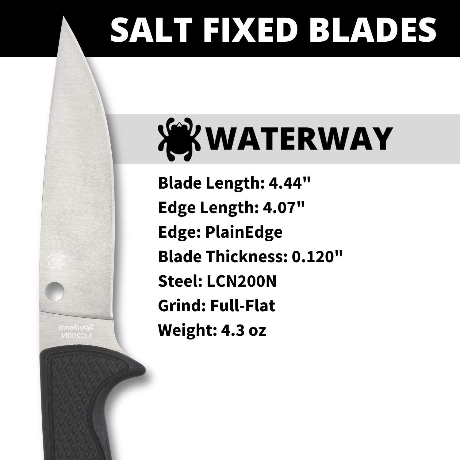 Spyderco WaterWay LC200N G10 Salt 4.44" Plain Edge Fixed Blade Knife (FB43GP) Specifications: