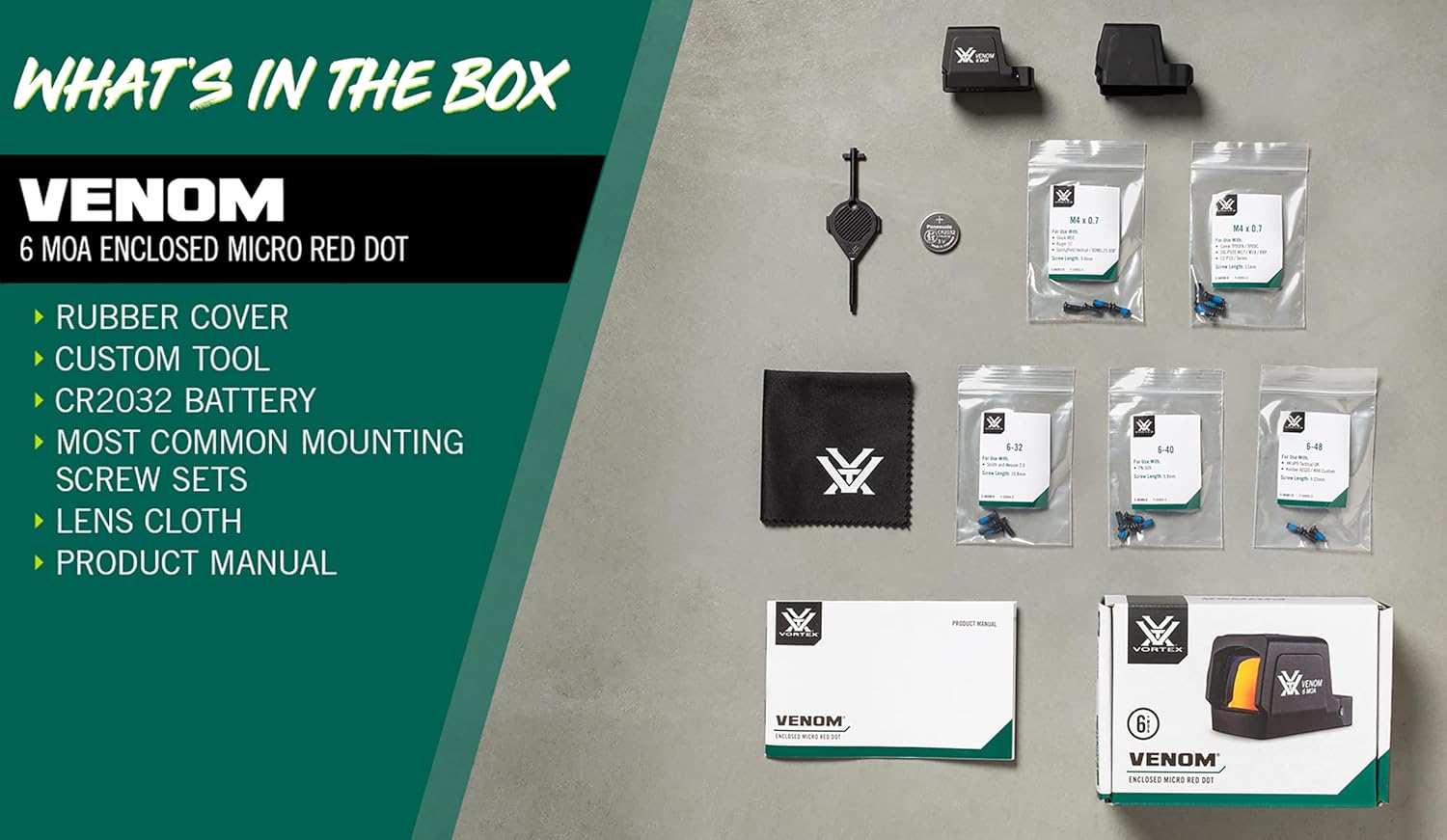 Vortex Optics Venom Enclosed Micro 6 MOA Red Dot (VEN-MRD6-E) Specifications: