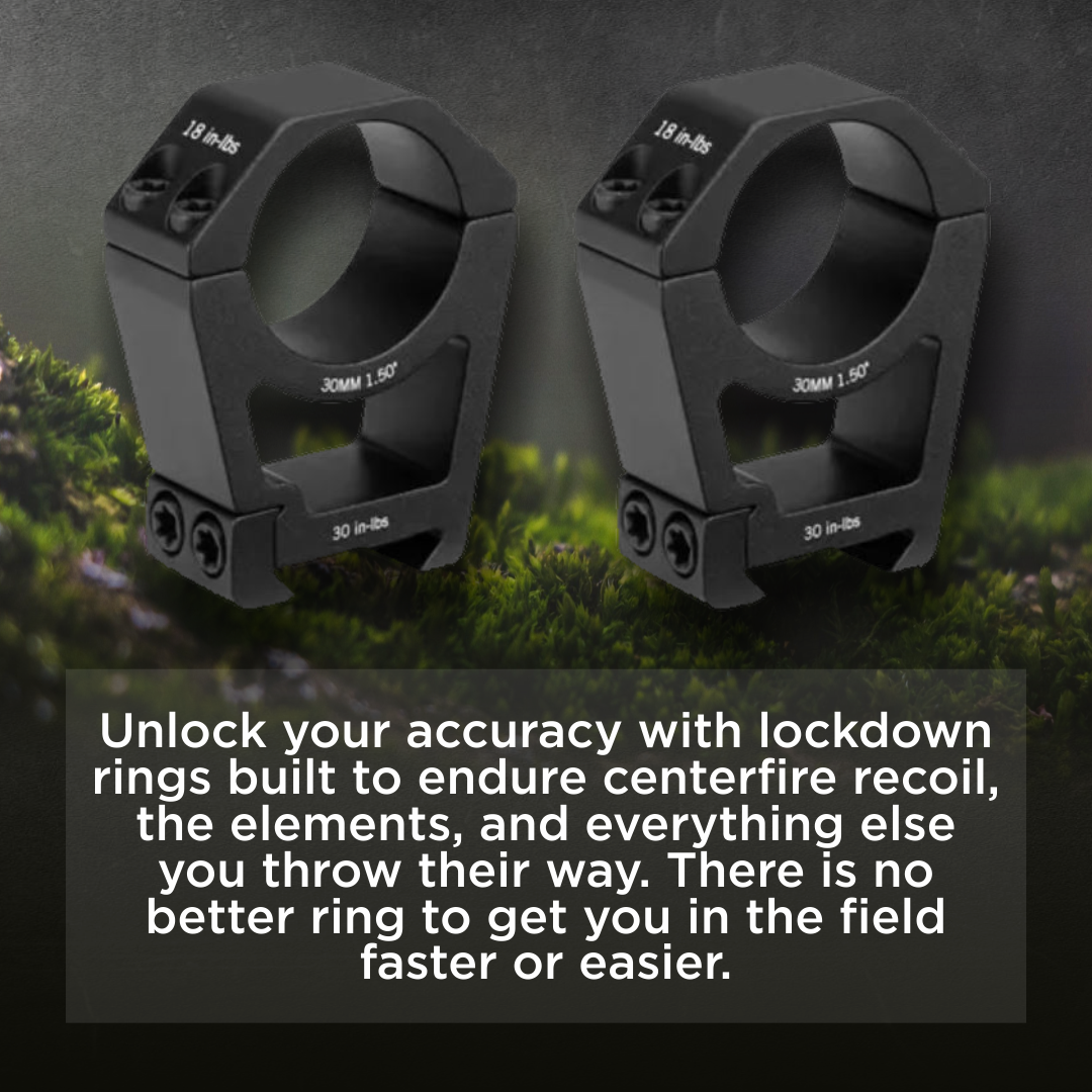 Unlock your accuracy with lockdown rings built to endure centerfire recoil, the elements, and everything else you throw their way. There is no better ring to get you in the field faster or easier.