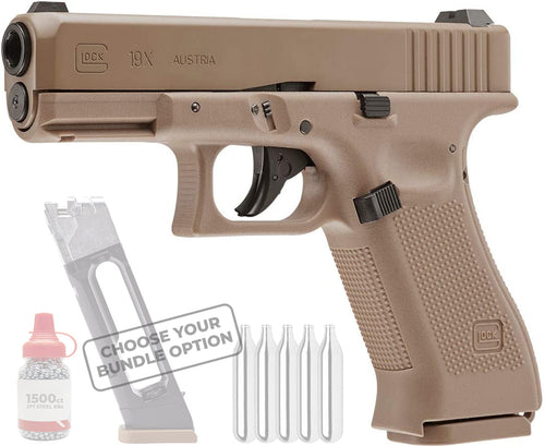 Umarex Glock 19X GEN5 .177 Cal Blowback Air Pistol, Tan (2255212) with Wearable4U Bundle