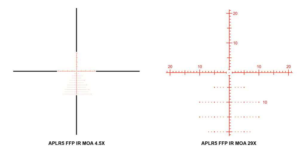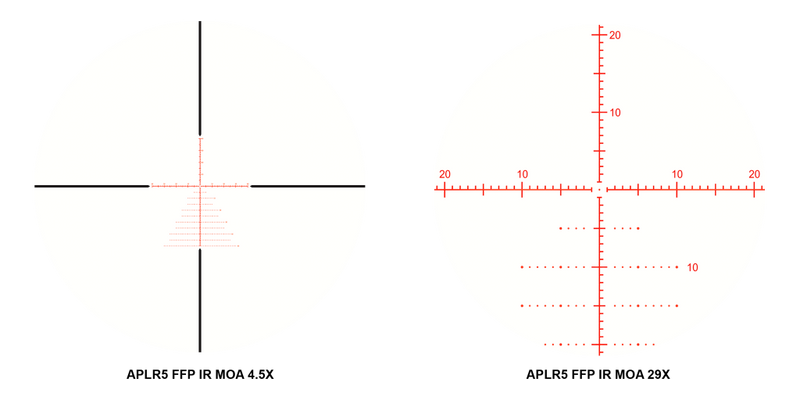 This Cronus BTR 4.5-29×56 Model has APLR5 first focal plane illuminated MOA reticle in it.