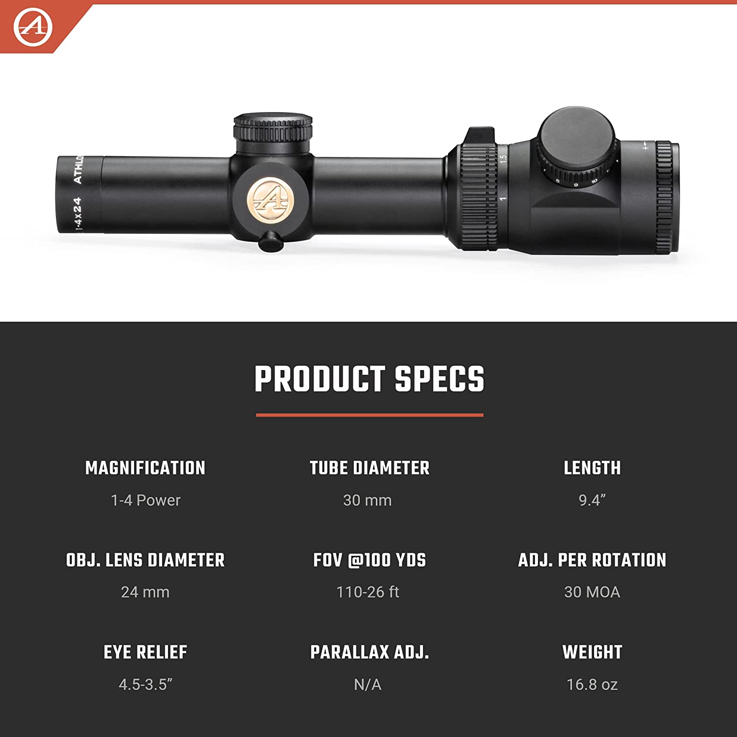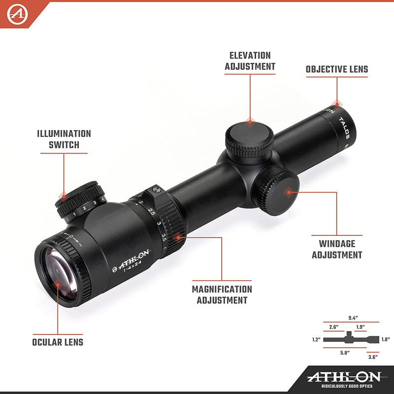 Athlon Optics Talos BTR GEN2 1-4×24 ATMR6 SFP IR MOA Riflescope Specifications:
