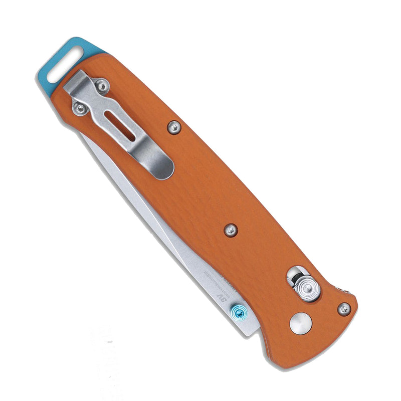 Part of the Black Class line, the Bailout was built to be exceptionally tough while retaining a slim, ultralight design that is ready to go anywhere you do. The 537-2301 enhances this great design with upgrades for both blade and handle materialsT. This version features an uncoated CPM-3V blade and an orange handle with blue accents. A high carbon alloy steel that is extremely tough and has enough chromium to have some corrosion resistance, though care is still required. High toughness translates to a stable edge that can be ground thin for enhanced performance.