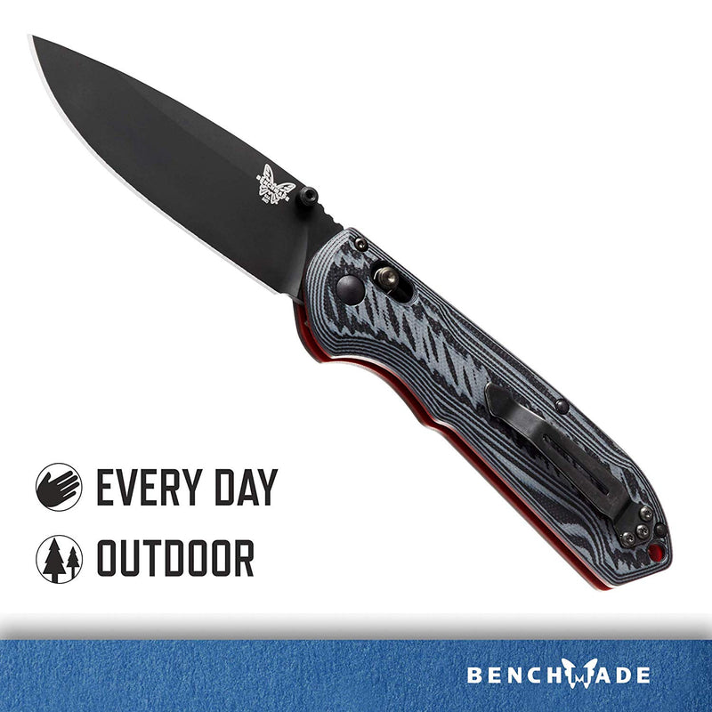 The Benchmade 560 Freek is a reliable everyday carry knife made to tackle cutting tasks of all sorts, whether indoors or out. It features a premium CPM-M4 tool steel blade with a black Cerakote finish. The textured G-10 handles offer excellent grip, while adding a bit of flair with the red base layer and red barrel spacers.