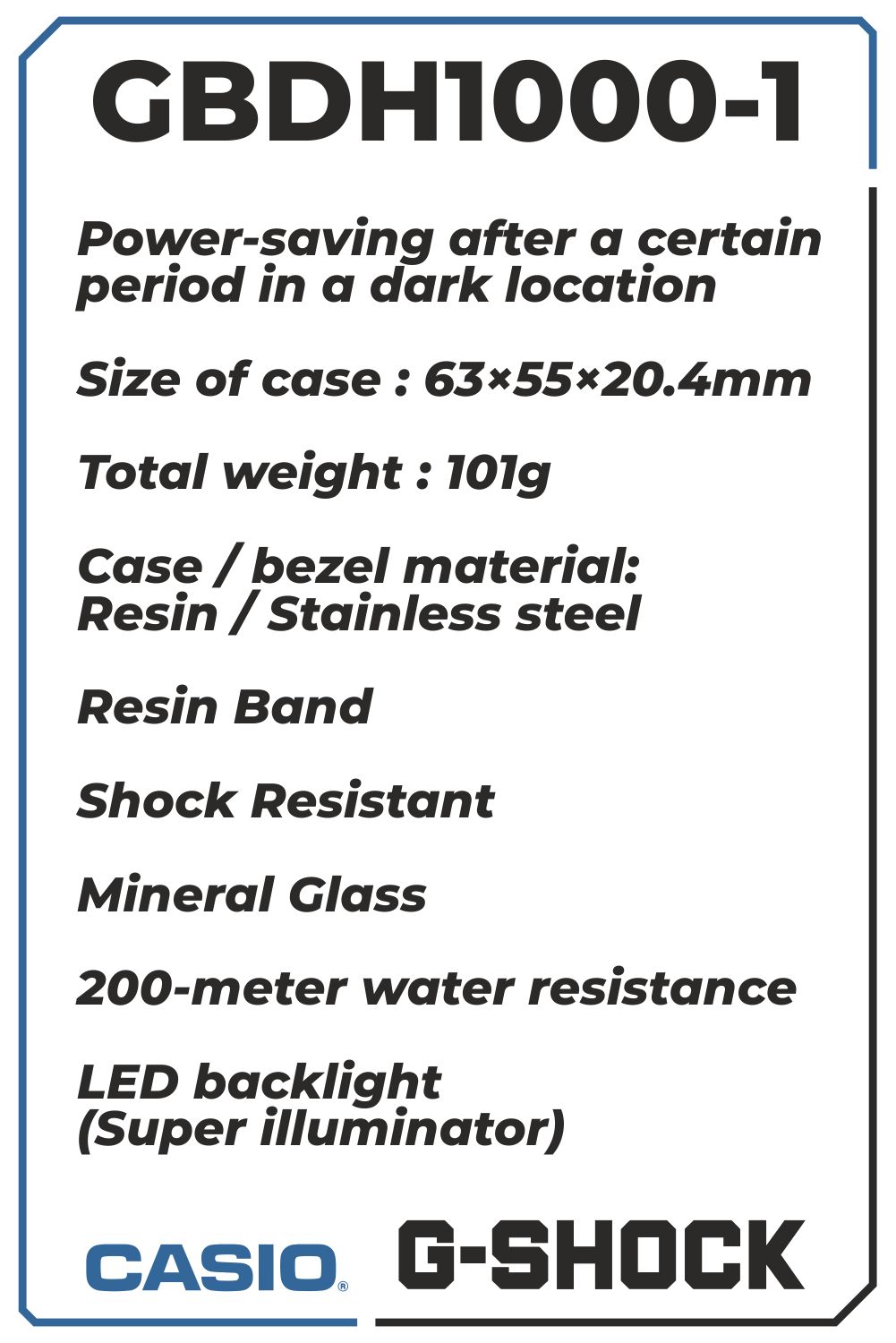 Casio G-Shock Move Digital Black Sport Watch GBDH1000-1 Specifications: