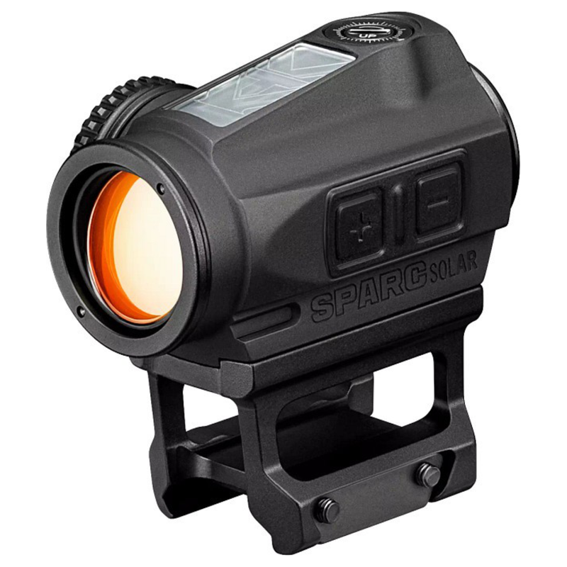 The SPARC SOLAR harnesses the power of the sun for up to 150,000 hours of battery life. Auto D-TEC technology automatically switches from solar to battery power when the sun can’t power the dot to your choice of 10 daytime illumination settings and two night-vision compatible settings. Its daylight bright, 2 MOA dot delivers a clear, precise point of aim, and is motion activation capable for worry-free activation in high stress. situations. Automatically switches from solar to battery power. Automatically activates with motion after auto shut-off.