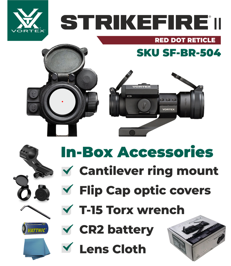 In The Box Vortex Optics Strikefire II 4 MOA Red Dot Sight with Vortex Optics Free Hat, Black Camo Bundle