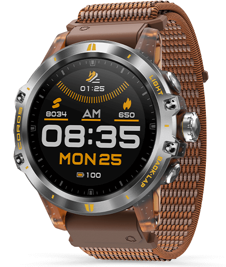 Striking sandstone spires rising under the desert sunlight, manifest the beauty and resilience of nature. A GPS watch inspired by the stunning desert towers in Southern Utah, we present COROS VERTIX Desert Sol. The titanium bezel with yellow engravings, and lava rock brown band evoke the energy of both the earth and the sun to power you through your next adventure.