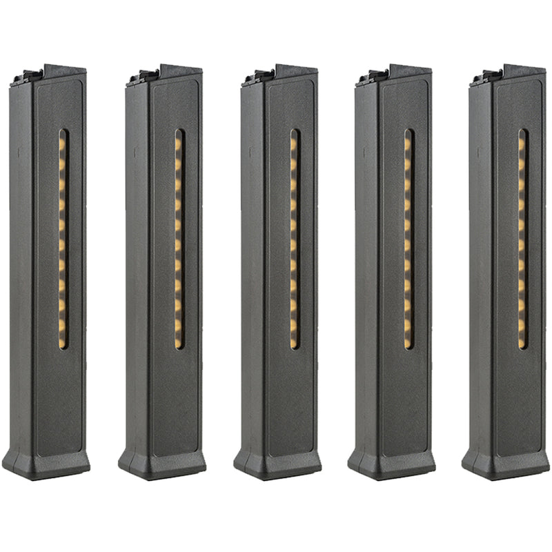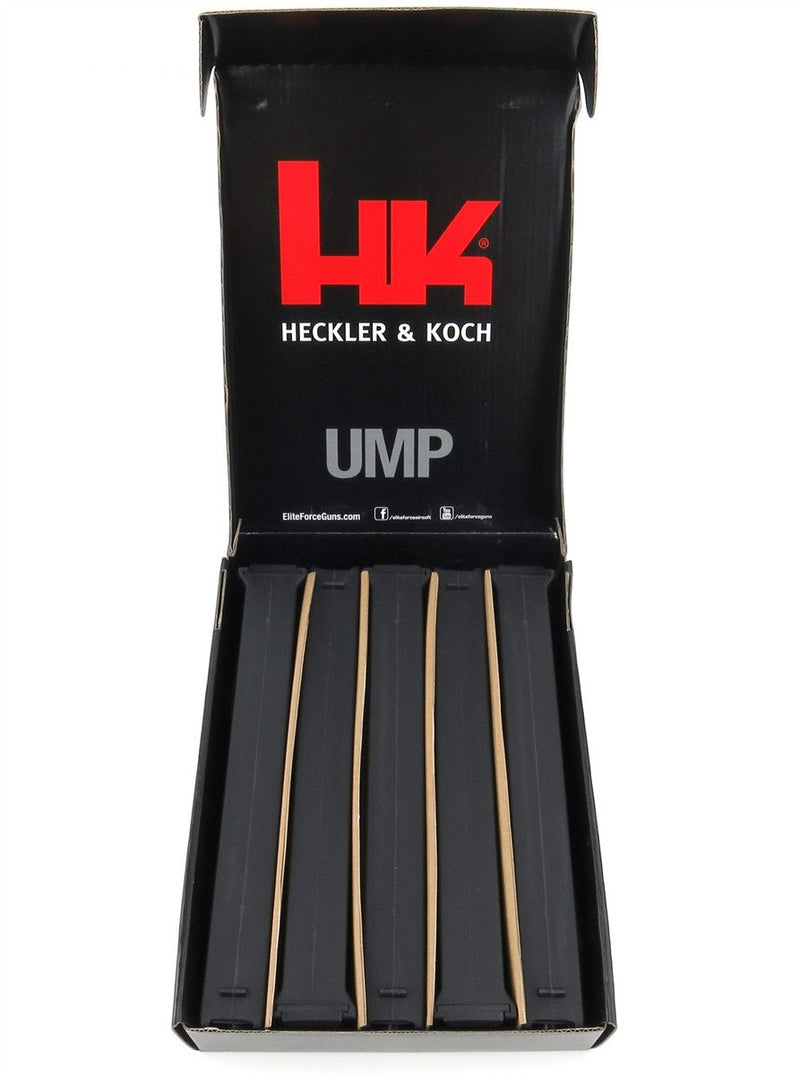 Pick up a five-pack of 110-round mid-capacity magazines for your Elite-series HK UMP airsoft AEG and stay in the game! Don't be the player making the walk of shame back to the staging area because you didn't bring enough mags. The airsoft mags are sturdy, made of ultra-high quality polymer.