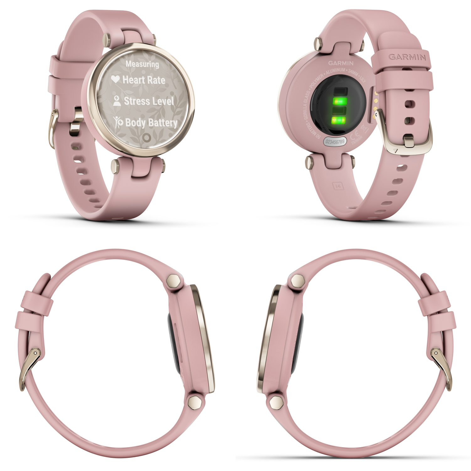 Lily is the small and stylish smartwatch you’ve been waiting for. With a flick of your wrist or a tap of your finger, the stylish patterned lens lights up to reveal a bright touchscreen display that disappears when you’re done with it. Always be connected to what matters with call, text and email notifications right on your wrist. This smartwatch even tracks steps, sleep, heart rate, energy levels, women’s health data and more to help keep up with your lifestyle. And — with a battery that lasts up to 5 days between charges — it really can keep up. Lily must be connected to the Garmin Connect app on your compatible smartphone.