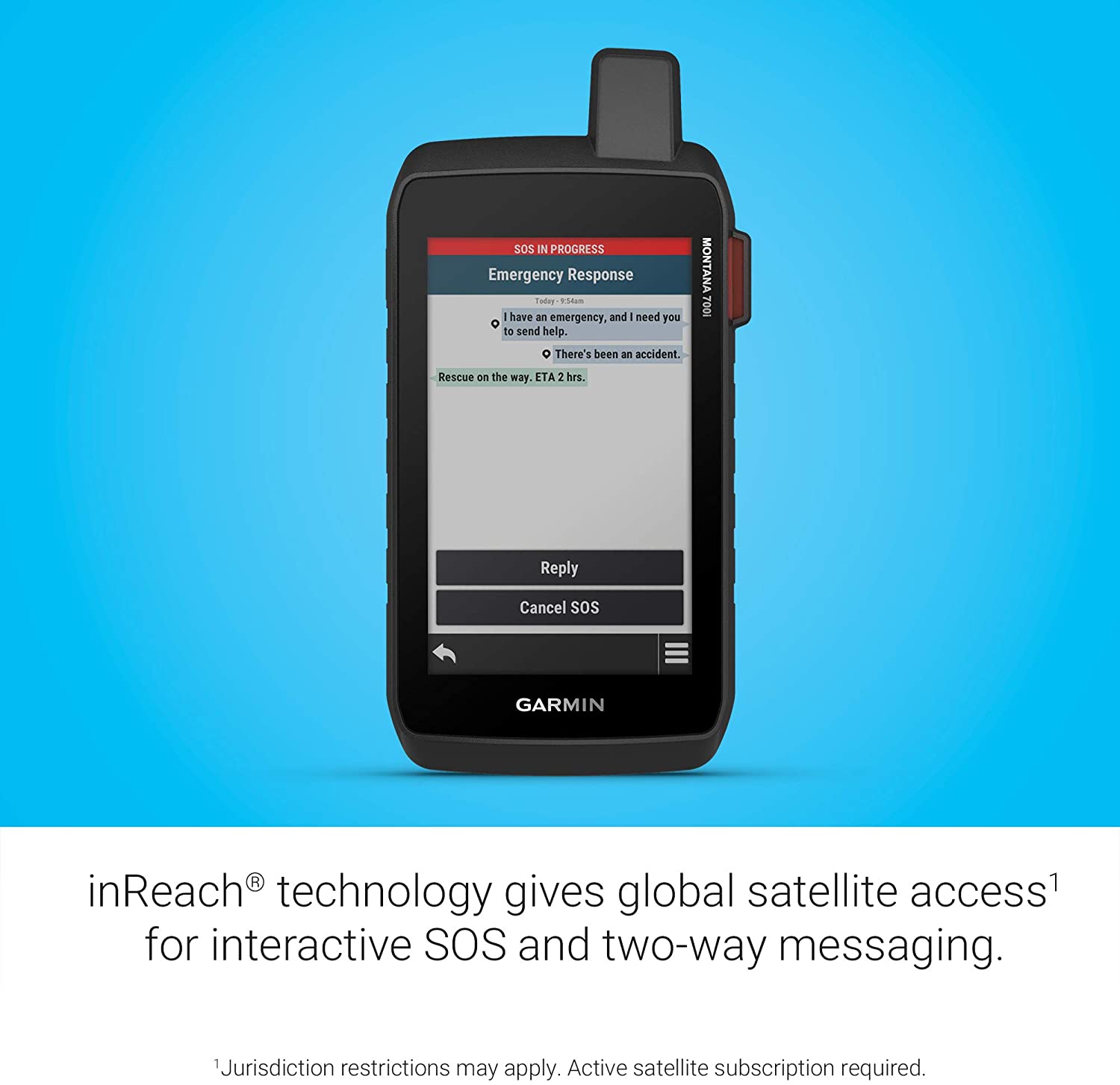 - Trigger an interactive SOS to the GEOS 24/7 monitoring center — two-way messaging via the 100% global Iridium satellite network (active satellite subscription required; some jurisdictions regulate or prohibit the use of satellite communications devices).