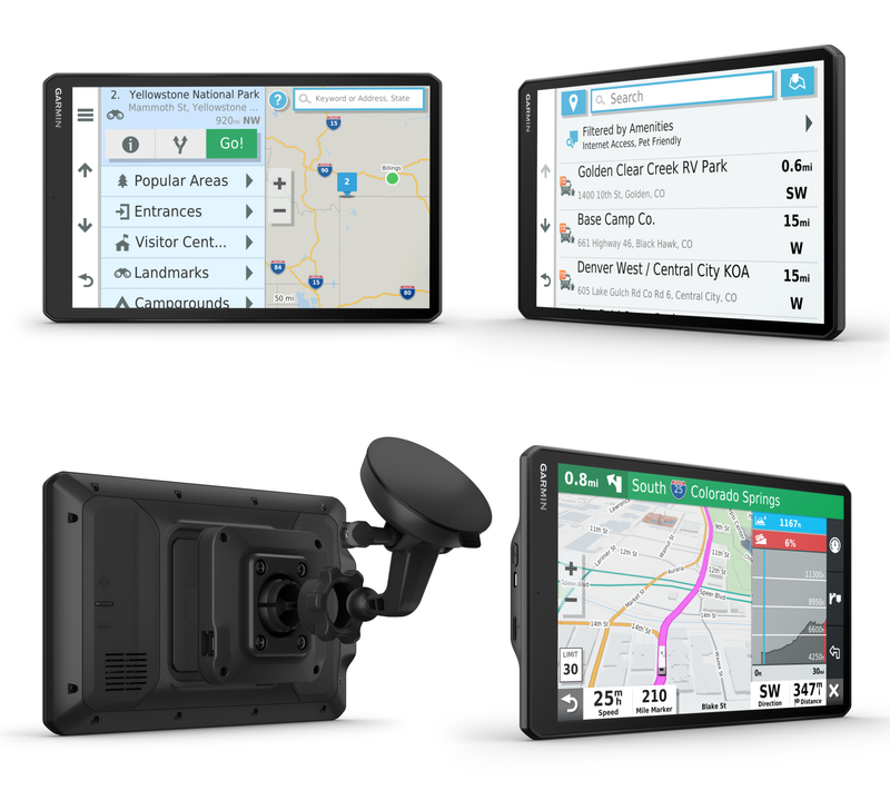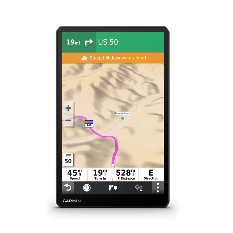 Get lost in the moments, not the route. The RV 1090 GPS navigator features a large 10" edge-to-edge display you can view in portrait or landscape mode. It creates custom routes that take into account the size and weight of your RV (Not available in all areas. Entering your RV or trailer profile characteristics does not guarantee your RV’s characteristics will be accounted for in all route suggestions. Always defer to all posted road signs and road conditions) and provides road warnings for steep grades, sharp curves and more.