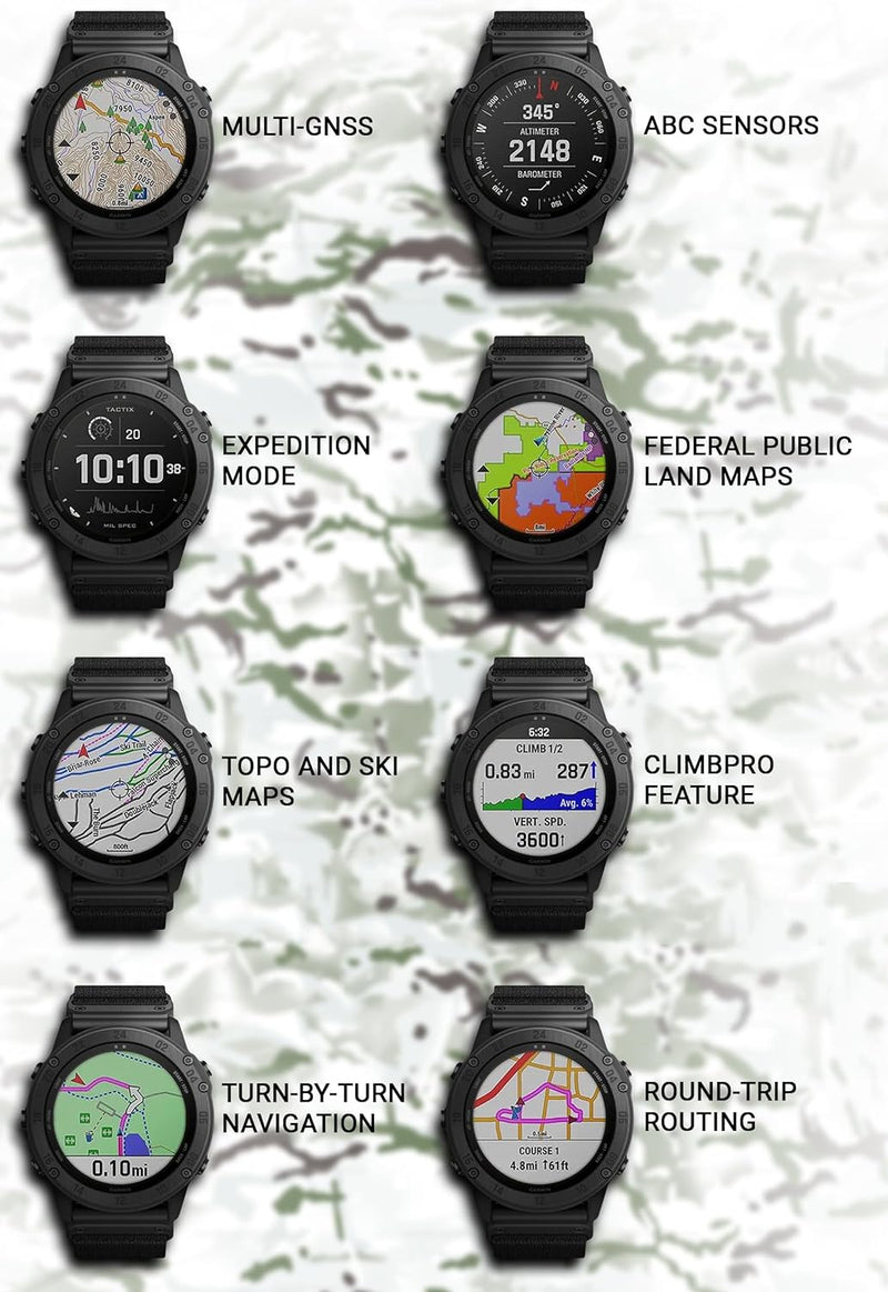 Navigate your next trail with ABC sensors, including an altimeter for elevation data, barometer to monitor weather and 3-axis electronic compass.