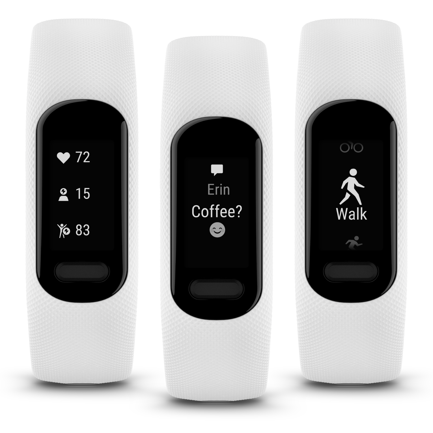 View moreTake charge of your health with Garmin vivosmart 5. This easy-to-use, comfortable fitness tracker comes loaded with features to track your activity all day and sleep stages all night once set up through the Garmin Connect app (This device is intended to give an estimate of your activity and metrics). Wrist-based heart rate, stress tracking, Body Battery energy monitoring and more help you stay informed while smart notifications from your paired smartphone keep you connected. Stay active with built-in sports apps that include profiles for walking, running, yoga, cardio, and more. Plus, when connected to your smartphone, incident detection (during select outdoor activities) and Assistance features send a message with your live location to emergency contacts for greater peace of mind (Requires setup and your smartphone to be in an area with network coverage where data connectivity is available). With up to 7 days of battery life, Vivosmart 5 gives you an uninterrupted picture of your health and can go wherever your busy schedule takes you.