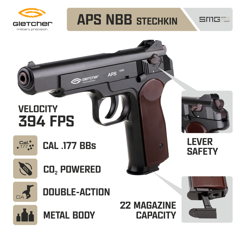 Its recognizable profile, rugged mechanical design, and excellent performance make this Air pistol ready for use in all conditions. Gletcher could not pass up the opportunity to recreate this model. To begin shooting, drop in a 12-gram CO2 cartridge into the 22rd BB magazine. This is the perfect CO2 Air pistol for you.